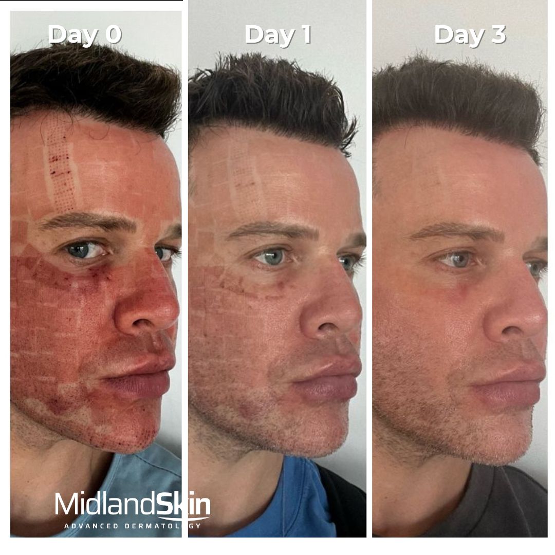 This patient took about 9 days for the skin to reform, and about 2 weeks before she was able to work from home or start going out.
