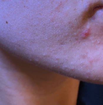 Macrocomedones are more than 1mm in diameter and look like white or skin coloured bumps that are just under the skin. The best way to see them is to stretch the skin and use a side light.