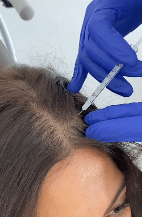 Treatment is performed using a micro droplet technique. In this technique and very fine needle is used to install a small drop at multiple sites with in an area so as to spread the dose of medication evenly and to reduce the chance of side effects. Treatments takes no more than 5 to 10 minutes. An eyebrow may require about 6 to 8 injections. A patch of hair loss that is 5 x 5cm may require about 10 to 15 small injections. There is very slight discomfort at the time of injection that is short lived. An anaesthetic is not required.
