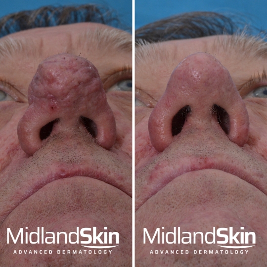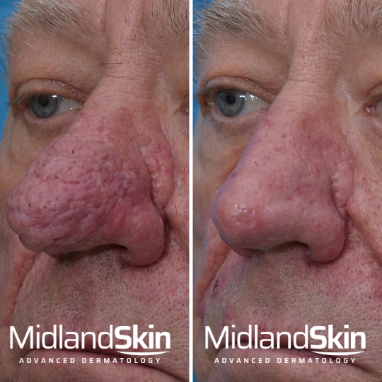 At Midland Skin, we offer advanced ablative CO2 and Erbium laser surgery to effectively treat rhinophyma, restoring a more natural nasal contour and improving overall skin texture. We can also advise on controlling early rhinophyma so as to limit its progression.