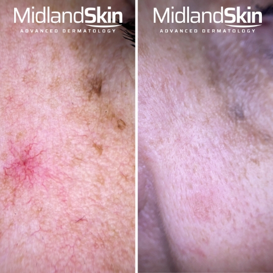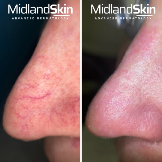 Thread veins, broken capillaries, and spider naevus can be treated with the following at Midland Skin and your doctor will advise you which treatments are suitable: