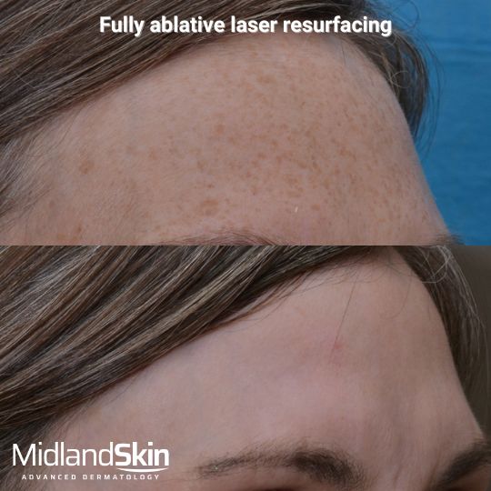 The most common treatment is full face fully ablative CO2 laser resurfacing. This procedure takes about 1 hour to perform. Fully ablative CO2 laser resurfacing can be carried out under local anaesthetic or sedation at Midland Skin.