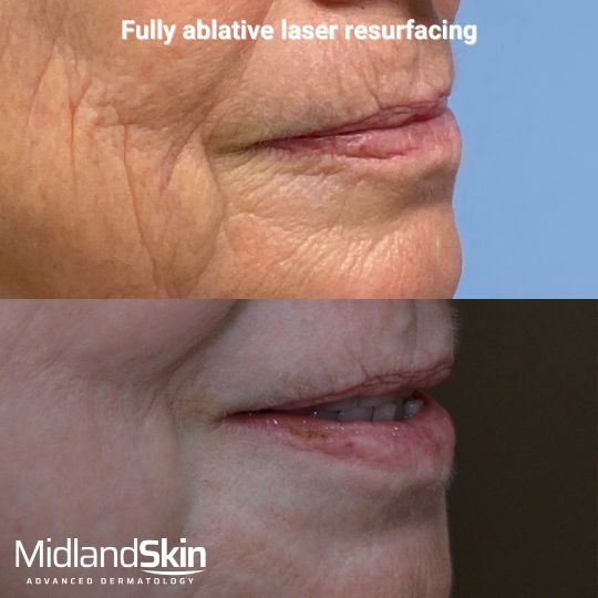Another popular area for fully ablative laser resurfacing is perioral lines. These are also called smokers lines or barcode lines. This treatment is usually superior to fillers in this area especially if lines are etched in.