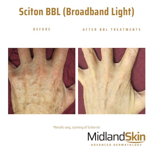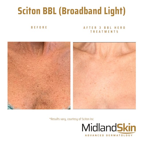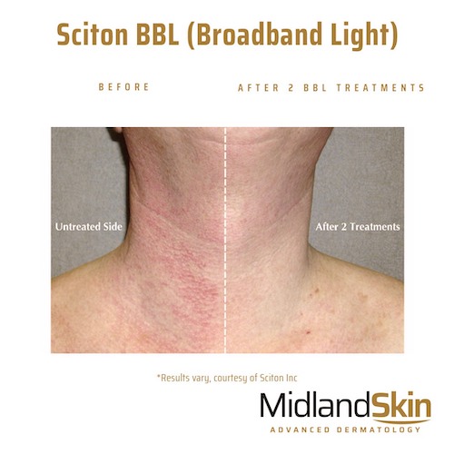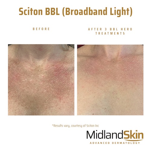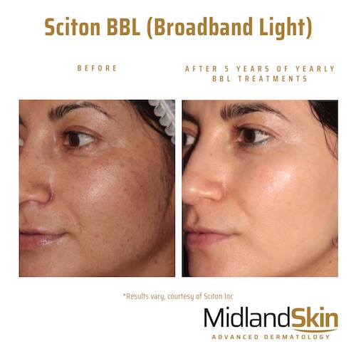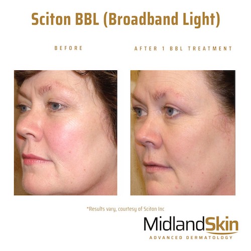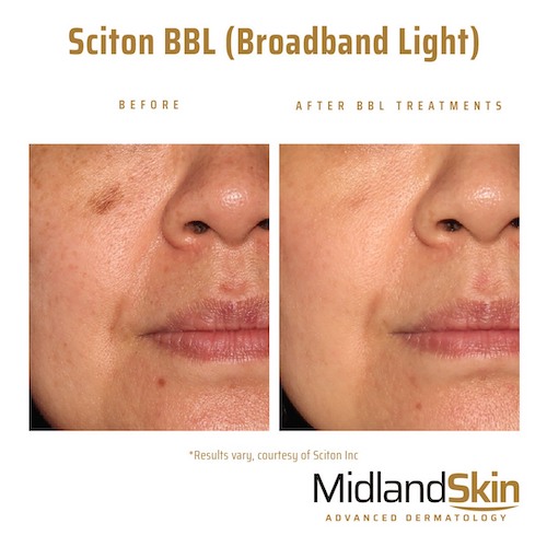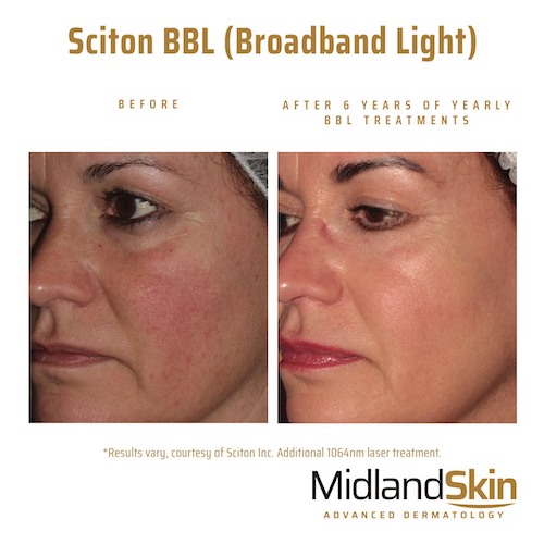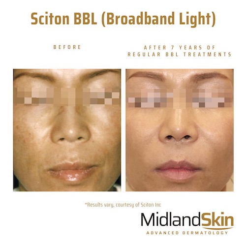 The dermatologists at Midland Skin use BBL to correct skin conditions and maintain healthy-looking skin with minimal downtime. The result of BBL treatment is brighter, fresher and smoother-looking skin. Regular BBL treatment is a good way of maintaining the appearance of the skin and preventing pigmentation and redness from recurring.